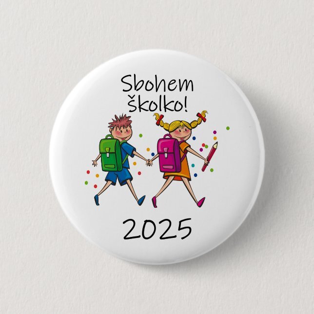 Originální dárek pro děti v mateřské škole na konec školního roku a nástup do 1. třídy. Dárek a památka na MŠ a začátek školního roku. Nevíte co dát dětem jako památku na mateřkou školku a první školní den v 1. třídě základní školy? Originální placka „Sbohem školko“